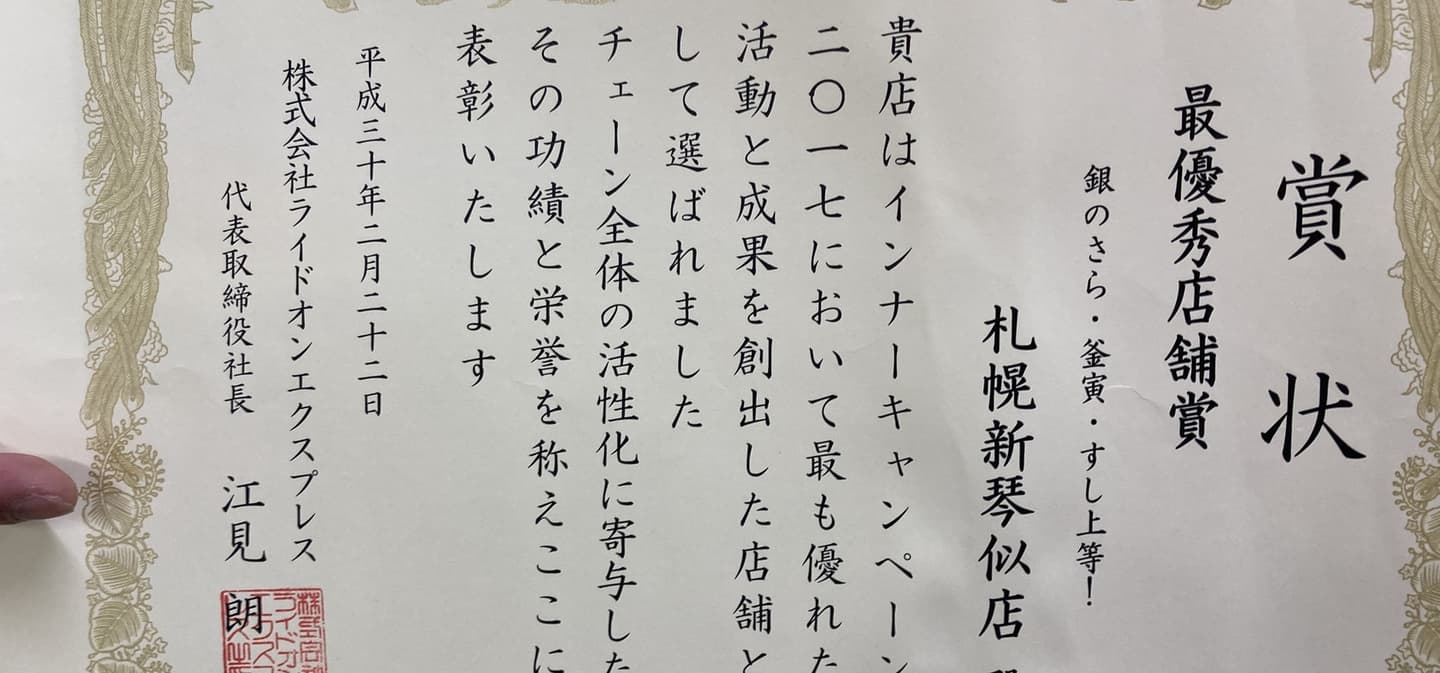 札幌新琴似店では、GinnoSaraAward2018にて